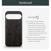 • Color difference description: The texture, color and wood grains of each phone case will be different - even with the same type of wood. Some Darkwood surfaces may have small holes from the wood fibers, and some Cherry surfaces may have black lines or dots from the wood grains. Also, the color of Darkwood in natural light is more brownish-black than pure black. These are all natural characteristics of wood and not flaws.