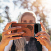 Our phone cases deliver standard protection, featuring slightly raised edges around the screen and camera to guard against direct contact. The frames are soft yet sufficiently protective. However, the hardness of the wood veneer depends on the material itself—Darkwood and Rosy are harder, while Walnut and Cherry are softer. Nonetheless, any wood is prone to show marks if knocked.